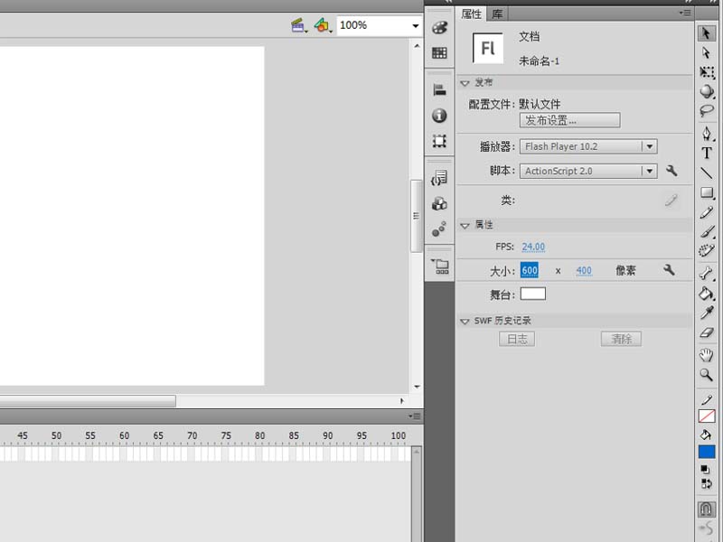 1、首先啟動flash cs5,新建一個文檔,大小設置為600*400,幀頻為12fps。
