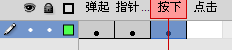 6、在指針幀和按下幀插入關鍵幀,在工具欄找到選擇工具,選中指針幀改變顏色為藍色,選中按下幀改變顏色為天藍色。