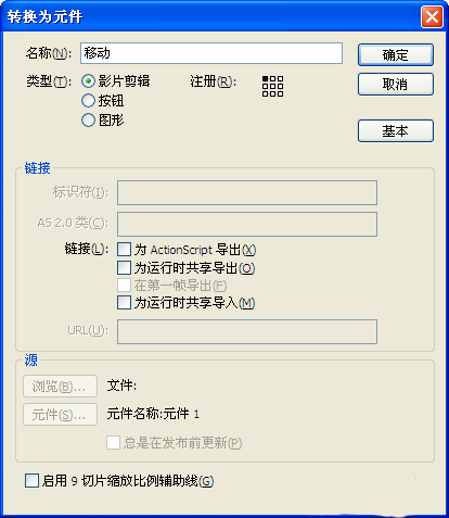 3、選中正方形,按F8把它轉換為影片剪輯,命名為移動