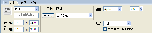 10、按F9退出編輯,然后再次選中按鈕元件,在屬性欄中將顏色選項選為Alpha,把值設為0%