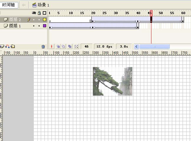 8、采用同樣的方法,依次建立7個(gè)圖層,重復(fù)步驟7,設(shè)置相應(yīng)元件的位置和alpha的值,創(chuàng)建相應(yīng)的補(bǔ)件動(dòng)畫。