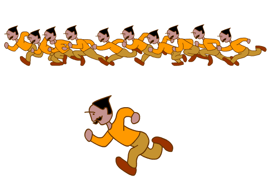2、在處理急速奔跑的動畫時,雙腳離地面的動作可以處理為1-2幀畫面,以增加速度感