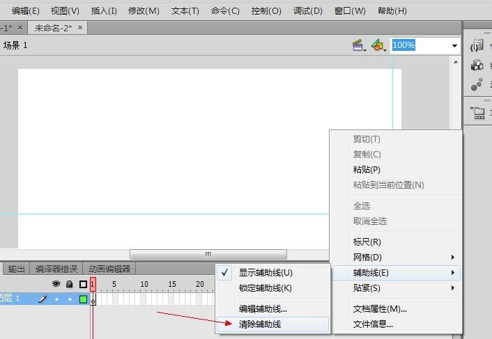 2、輔助線的刪除可以通過手動輔助線到場景外面板或菜單欄等處來刪除,只是這種方法一次只能清除一條輔助線,如果有多條要清除,則可以通過視圖菜單或場景右鍵菜單里的輔助線菜單項下的清除輔助線功能來一次性清除。