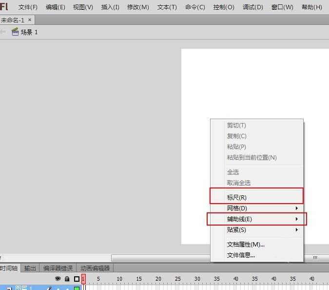 Flash cs6與大部分設計軟件一樣,也提供了標尺民輔助參考線功能,使用標尺和參考輔助線,可以快速精確定位圖形位置,為整體動畫設計布局提供了便利。