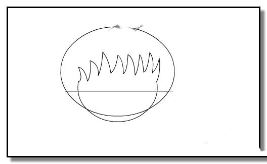 2、選取線條工具,大約在橢圓的三分之一處畫一條橫線。把多余的線條刪除;剩下的就是臉的輪廓。