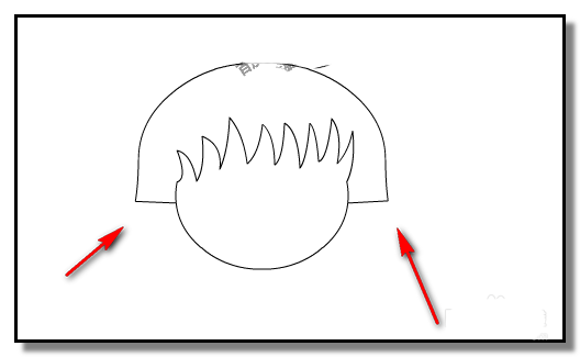 7、新建圖層,用線條工具,在臉兩邊各畫一只耳朵。用橡皮擦把耳朵下多余線條擦除掉。