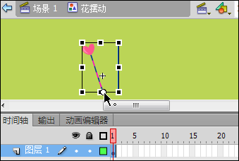 3、選中當前圖層第4幀,按F6插入關鍵幀,使用“任意變形工具”向右旋轉一定的角度,使花朵朝中間。再選中當前圖層第7幀,按F6插入關鍵幀,再次使用“任意變形工具”向右旋轉,使花朵朝右,如圖3所示,完成一個花朵擺動的逐幀動畫。選中第10幀,按F5插入普通幀,使花擺動的每個關鍵幀持續時長一致。