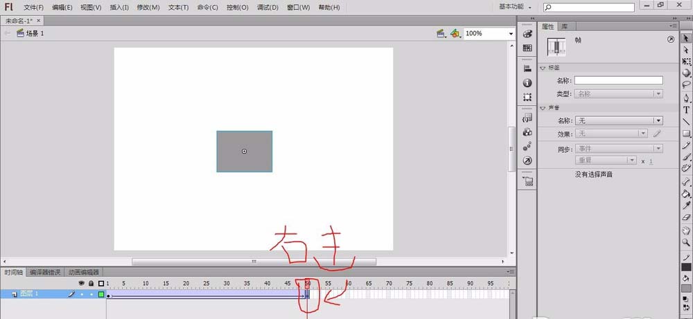 5、選擇“按鈕”圖層的第50幀,打開(kāi)屬性,選擇“箭頭”