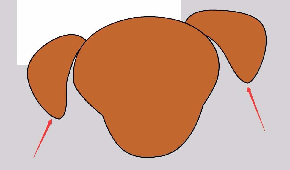 8、使用鋼筆工具,繪制兩個形狀,作為狗狗的耳朵,如圖所示: