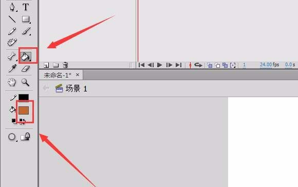 6、選擇顏料工具,將剛剛繪制的圖形填充為棕色,如圖所示: