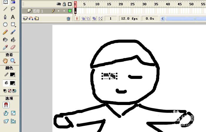 6、接著,取消選用的任意變形工具,查看卡通男孩圖形的改變,眼睛的曲線旋轉(zhuǎn)了,并且拉長了,如下圖所示。