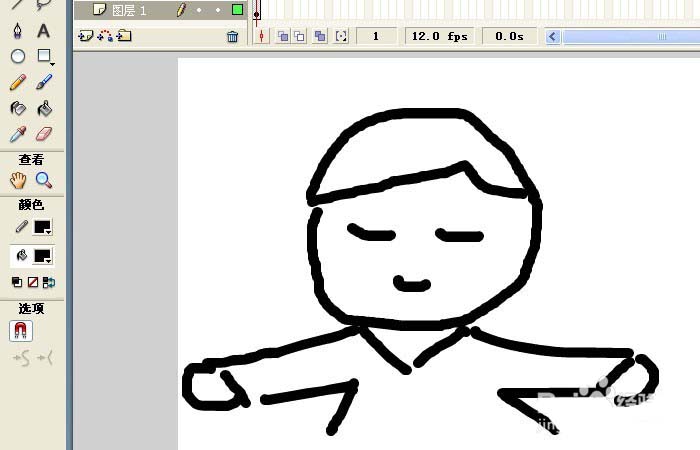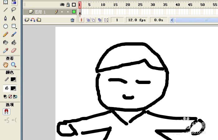 2、接著,鼠標(biāo)左鍵用刷子工具在畫布上拖動繪制出一個卡通男孩人物出來,如下圖所示。