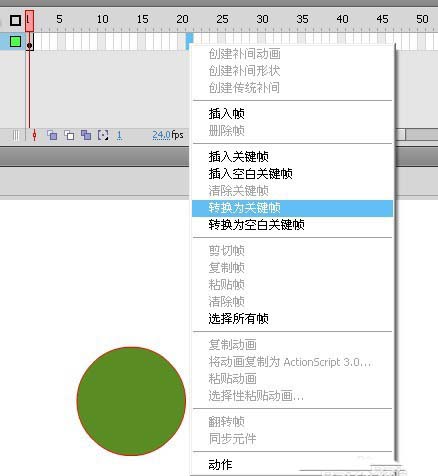 4、在時間軸上適當的位置右鍵一幀,點擊轉換為關鍵幀。