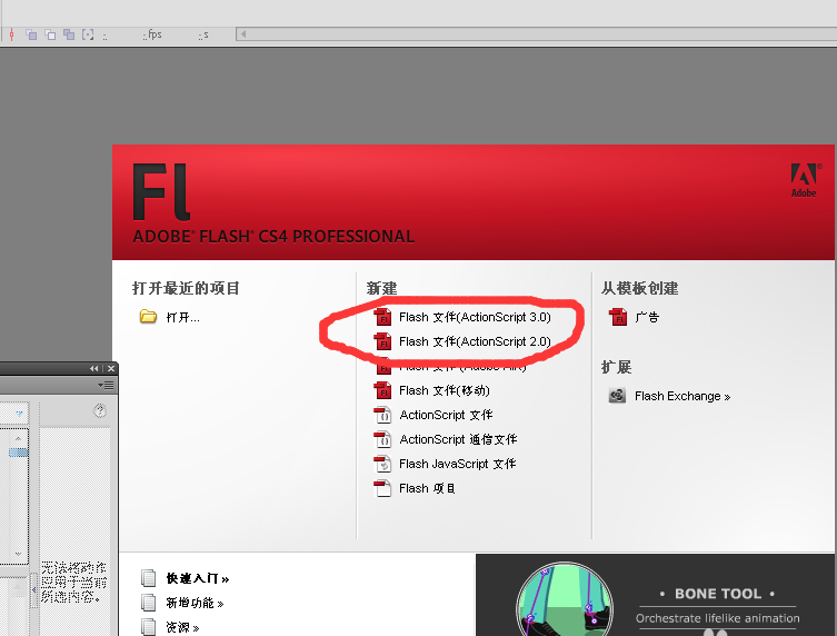 2、選擇action script3.0的,也可以選2.0的,這兩個是編程語言版本不同,對于簡易的、不需要代碼的動畫沒影響。