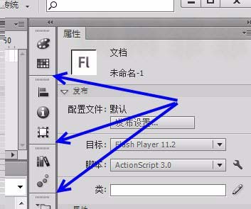 <3>因為上述面板在flashCS6軟件界面的右邊,所以是 箭頭向右指表示折疊。但如果面板在flashCS6界面的左邊(工具箱),那么,箭頭向右指則表示展開。也即是說,<1><2>里提及的向哪個方向指 是 展開還是折疊,乃是相對的概念。