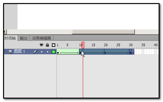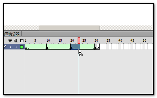 6、再點住向左移,移到目標位置,再放開鼠標,這樣,就能把第10幀到第20幀這一段縮短,第20幀到第30幀這一段拉長。