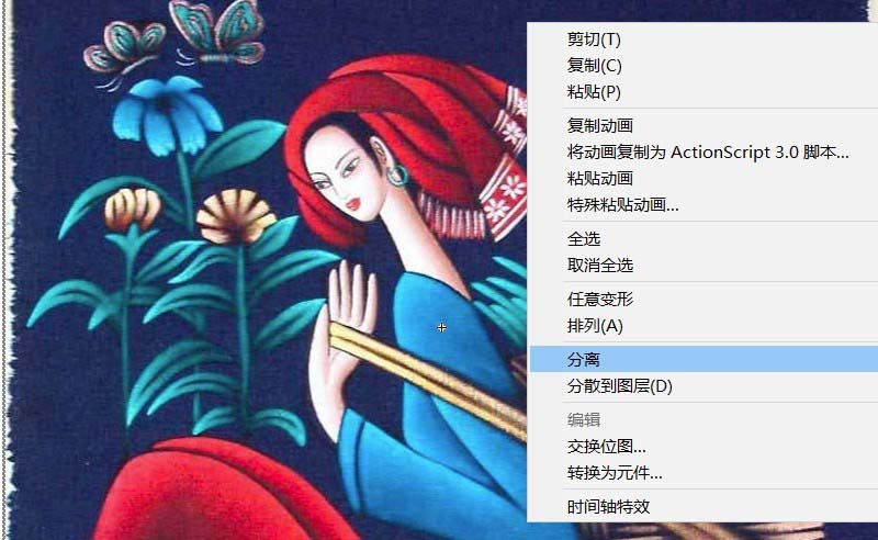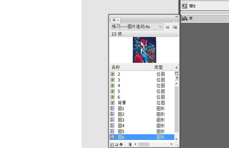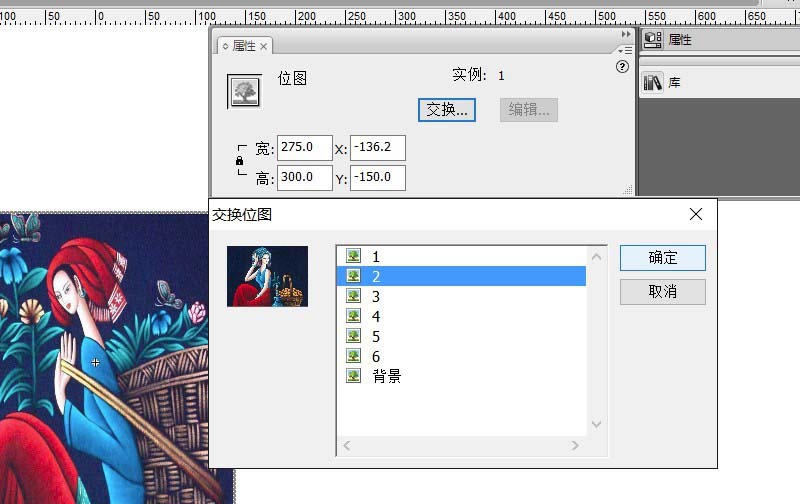 8、雙擊元件圖2,進入該元件編輯,點圖片,在屬性面板中交換圖片。圖片右鍵,分離。依次更改所有圖片元件,包括圖1的圖片分離。