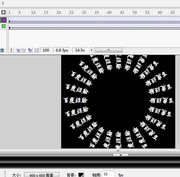 1、首先啟動flash8,新建一文檔,大小設置為600*600,背景顏色為黑色,幀頻為12fps。