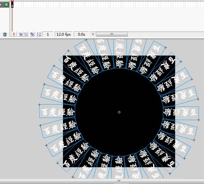 3、選擇任意變形工具,將中心點移動到舞臺中心,設置變形角度為15,點擊復制并應用變形按鈕,直至形成圓形。