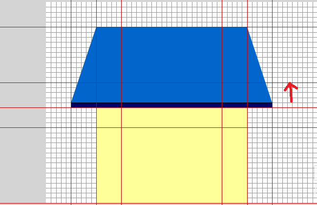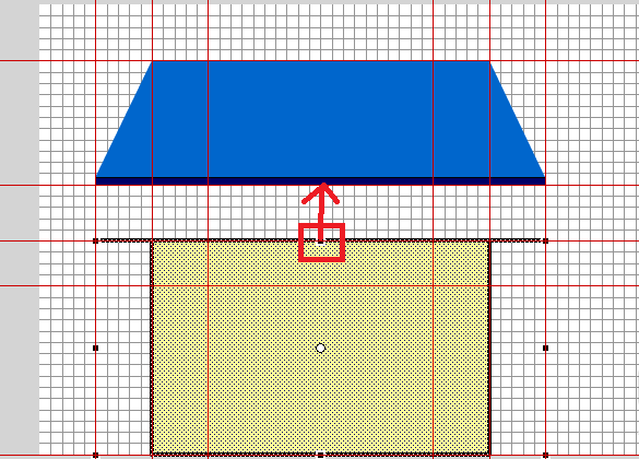 7、鼠標左鍵選中下圖紅框中的那個黑點,并按住向上移動,與屋檐底邊重合為止。
