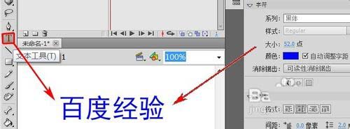 3、在工具欄選擇“文本工具”,在舞臺輸入文字“百度經驗”