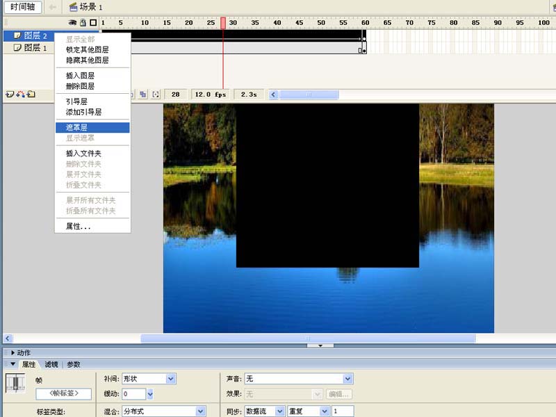 6、右鍵單擊圖層2,從下拉菜單中選擇遮罩層選項,將圖層2設置遮罩層,執行ctrl+enter組合鍵測試動畫效果。