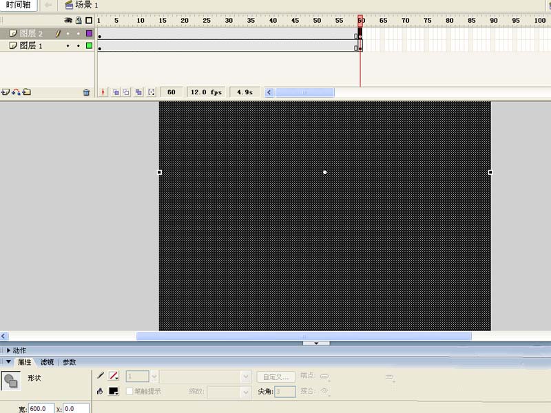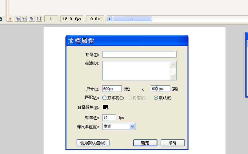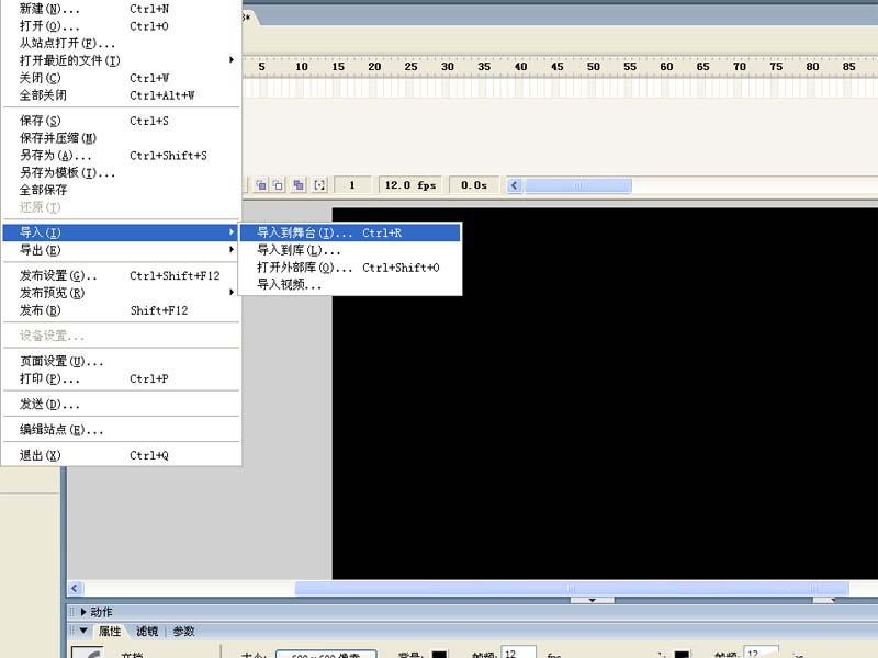 1、首先啟動flash8,新建一文檔,設置大小為600*600,幀頻為12fps,背景顏色為黑色。