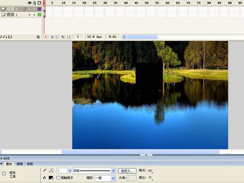 4、在圖層1的60幀處插入幀,在圖層2的60幀處插入關鍵幀,并修改正方形覆蓋整個屏幕。