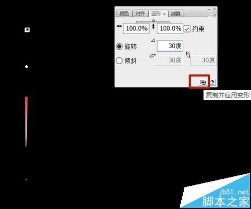 13、Ctrl+T調(diào)出變形面板,旋轉(zhuǎn)度數(shù)30,點擊復(fù)制并變形按鈕。復(fù)制出11個。