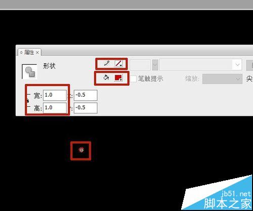 2、O鍵調(diào)出橢圓工具,禁用線條色,填充色紅色。按住shift鍵,在第一幀,畫一個紅色的圓。