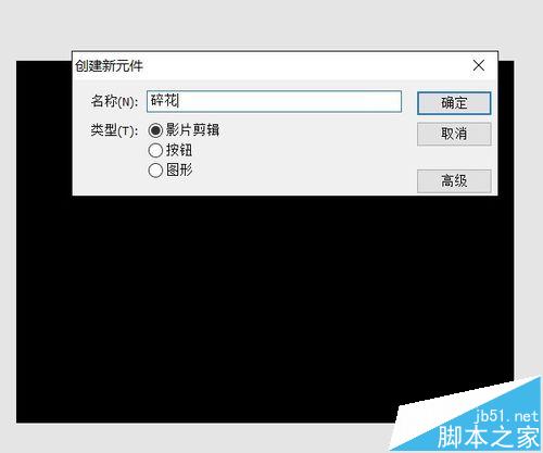 1、Ctrl+F8新建一個影片剪輯元件,取名碎花。