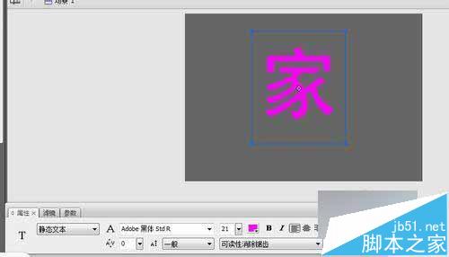 1.創(chuàng)建好一個(gè)文檔之后,在工具欄中選擇文本工具,然后打開(kāi)筆觸的顏色樣板。任意選擇一種筆觸顏色。在工作區(qū)寫(xiě)上“家”字。如下圖所示:
