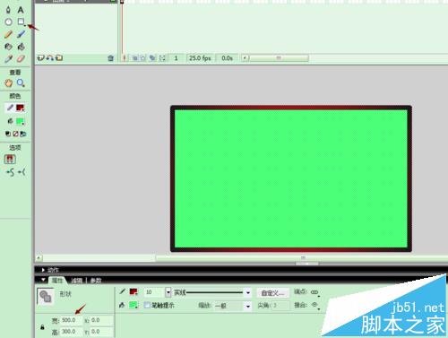 2、選擇矩形工具繪制一個500*300的矩形;