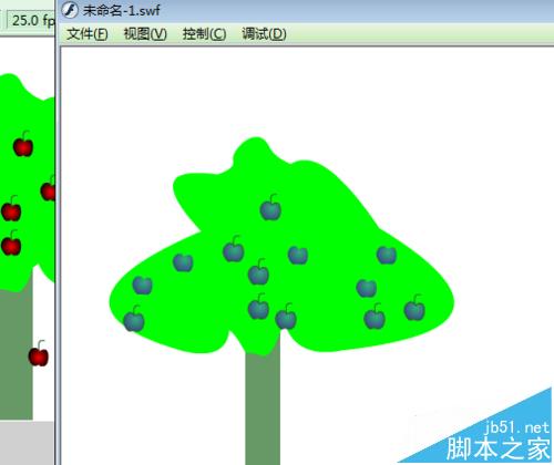 用FLASH模擬熟透的蘋果,用到形狀補間,注意形狀補間的使用條件。
