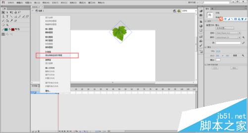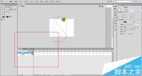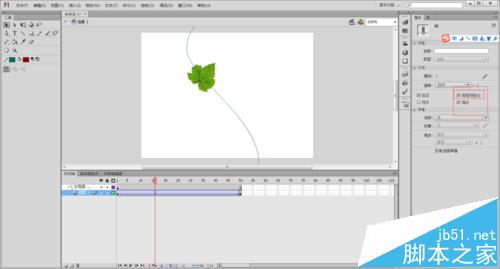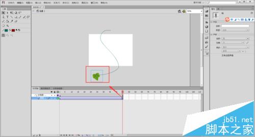 15、選中圖層1的最后一幀,把樹葉放到引導線的結尾處,如圖
