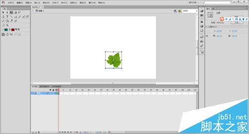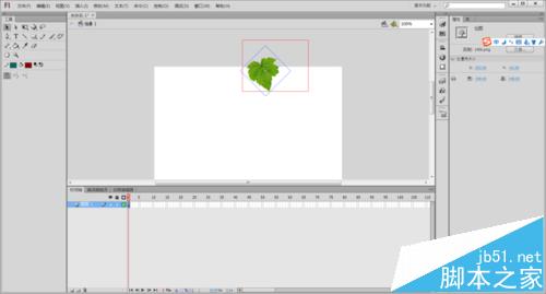 14、選中圖層1的第一幀,把樹葉放到引導線的開始處,如圖