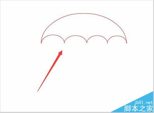 10、再在工具箱內(nèi)找到鋼筆工具,用鋼筆工具繪制傘吧的把手,如圖所示:
