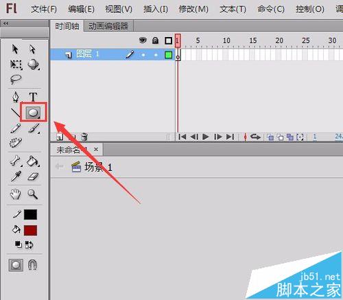 2、在這個打開的界面的左側(cè)找到工具箱里的橢圓工具,如圖所示: