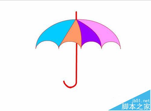 12、選擇油漆桶工具后,并在顏色里調(diào)節(jié)不同的顏色,給我們的傘上填充上不同的顏色,這樣一把漂亮的雨傘就制作完成了,如圖所示: