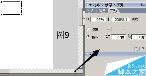 4、在工具箱中點選“任意”變形工具;矩形即變成如圖7所示的樣式;圖形中四周有8個控制點,中間位置有一個變形中心點;現在,再點選“選擇”工具,光標放在變形中心點側邊,當光標箭頭右側顯出一個小圓圈時,即表示可以移動變形中心點了。然后,把變形中心點移到矩形的左下角;