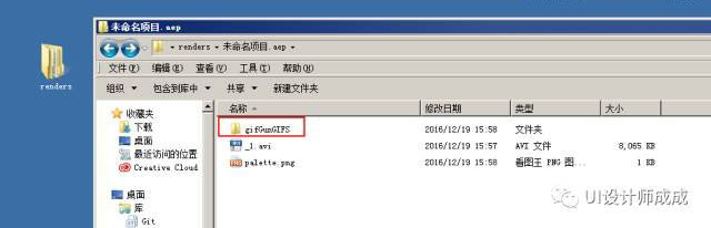 8、桌面找到renders文件夾,進入找GIF圖片即可。有些時候會因為設置問題直接生成到桌面或者其他文件夾,這個根據情況找就行了。