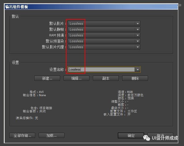 6、安裝后,點擊編輯--模板--輸出模塊,點擊設置下面的--新建按鈕--然后關閉彈窗(這一步看似沒用,最好按照教程來),在未命名那里改個名字,必須為”Lossless“----上面的默認設置全部為”無損“(Lossless)--然后點擊確定