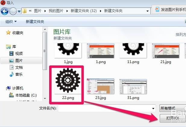 4、這里小編導入一張齒輪的圖片到舞臺上。