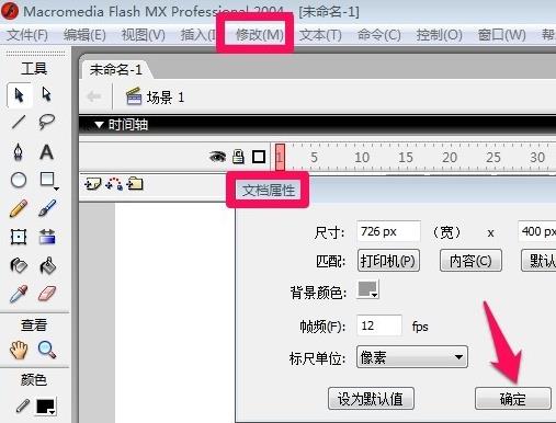 2、然后在修改菜單的文檔中設置影片的大小以及背景顏色等信息。