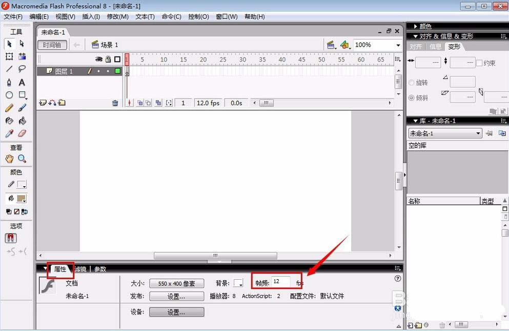 在flash的制作過程中會遇到調節動畫頻率的問題,想讓整體節奏快一些,或者是慢一些,這就用到幀頻,通常flash新建默認的數值是12,接下來就介紹如果進行修改。