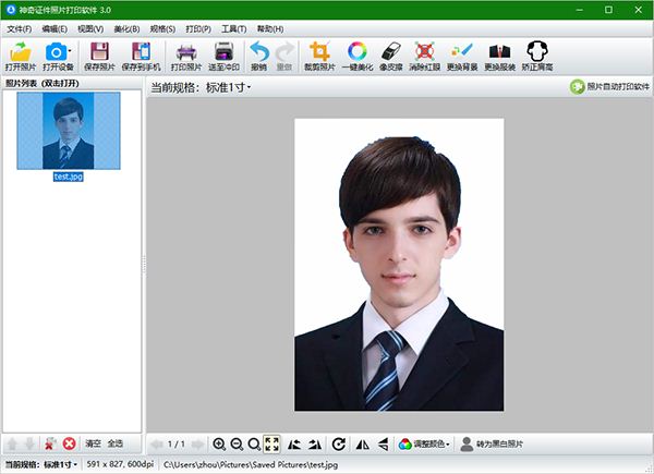 1、打開神奇證件照片打印軟件,選擇證照格式,打開一張照片或拍攝一張照片,如下圖所示: