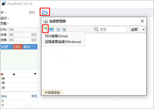 雙擊桌面FinalShell快捷方式打開“FinalShell”軟件,選擇打開“連接管理器”菜單選項,如下圖所示。在彈出的“連接管理器”中,選擇打開新增選擇,如果是要遠程連接Linux系統(tǒng),選擇“SSH連接”選項,如下圖所示。