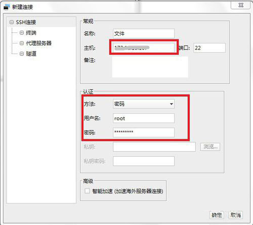 在彈出的“新建連接”頁面,輸入遠程Linux系統(tǒng)的ip,認證方式欄中輸入認證方式、用戶名、密碼等信息,并“確定”退出。在“連接管理器”中可以看到新增加的遠程連接信息。如下圖所示。