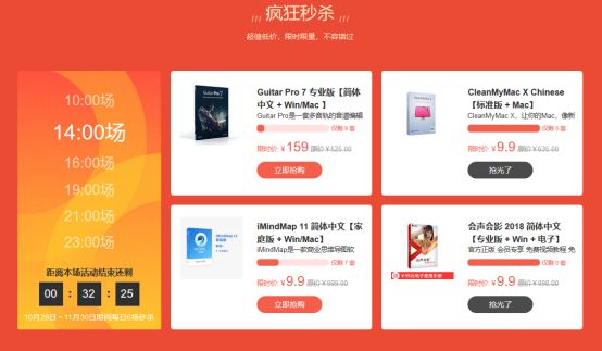 此次秒殺專區會限時上架一些軟件,將會以超低價格刷新人們的眼球,活動時間為:10月28日-11月30日,每日將會提供六場秒殺活動!簡單粗暴,不接受任何購物套路!