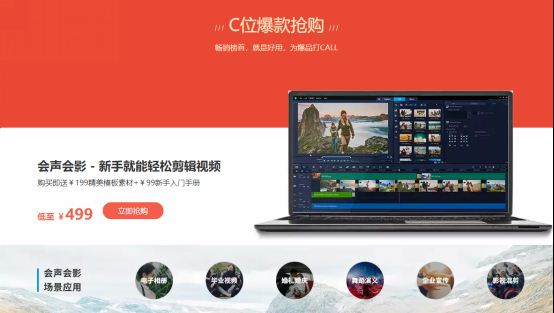 其中包括耳熟能詳的會聲會影,更是低至499元!而且購買即送¥199的精美模板素材+¥99元的新手入門手冊。